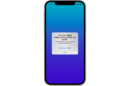 “如果应用程序想在各个应用程序之间进行跟踪时,必须得到你的许可。”